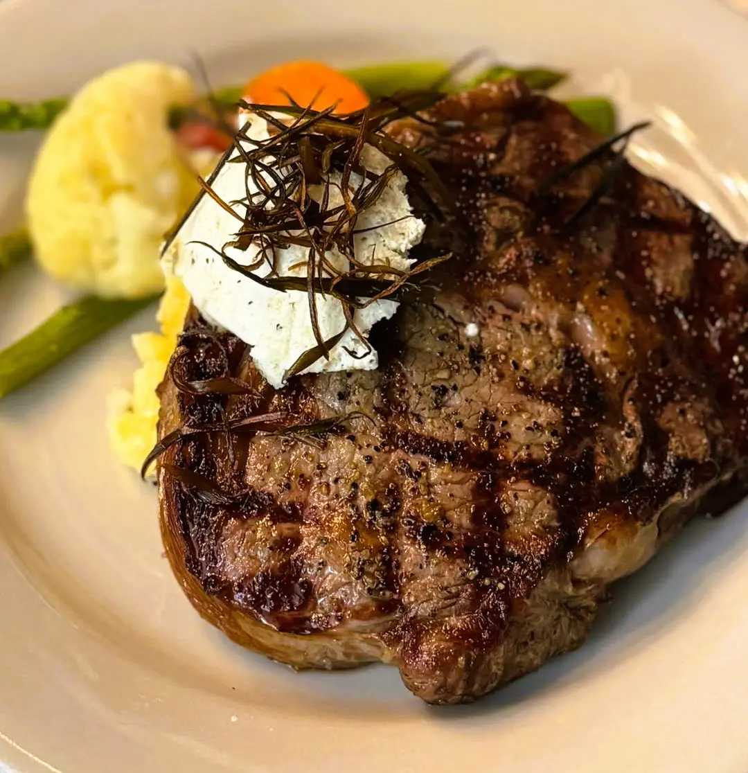 14oz Northwest ribeye with seasonal vegetables, crème‑fraiche mashed potatoes,